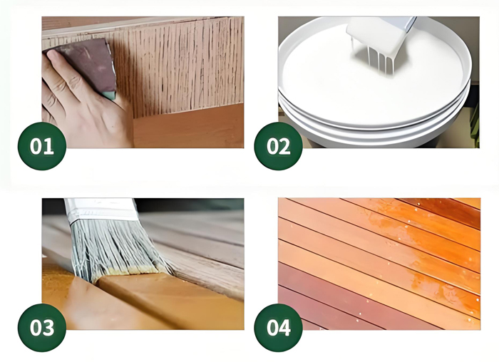 Préparation de la surface : Le bois doit être propre, sec, sain et exempt de contaminants (poussière, graisse, vieille peinture/vernis écaillés). Le ponçage est généralement indispensable pour l’adhésion. Des apprêts sont souvent nécessaires (utilisez les apprêts spécifiés par le fabricant).